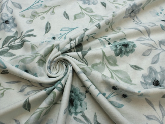 FLANELA BAWEŁNIANA KWIATY MIĘTOWE