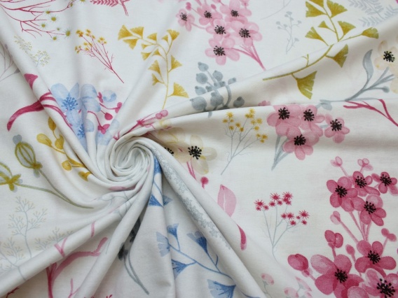 FLANELA BAWEŁNIANA KWIATY RÓŻOWE