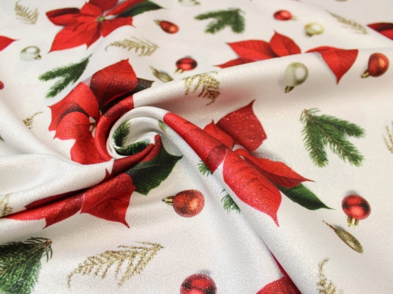 Tkanina obrusowa zasłonowa świąteczna gwiazda betlejemska czerwona błyszcząca
